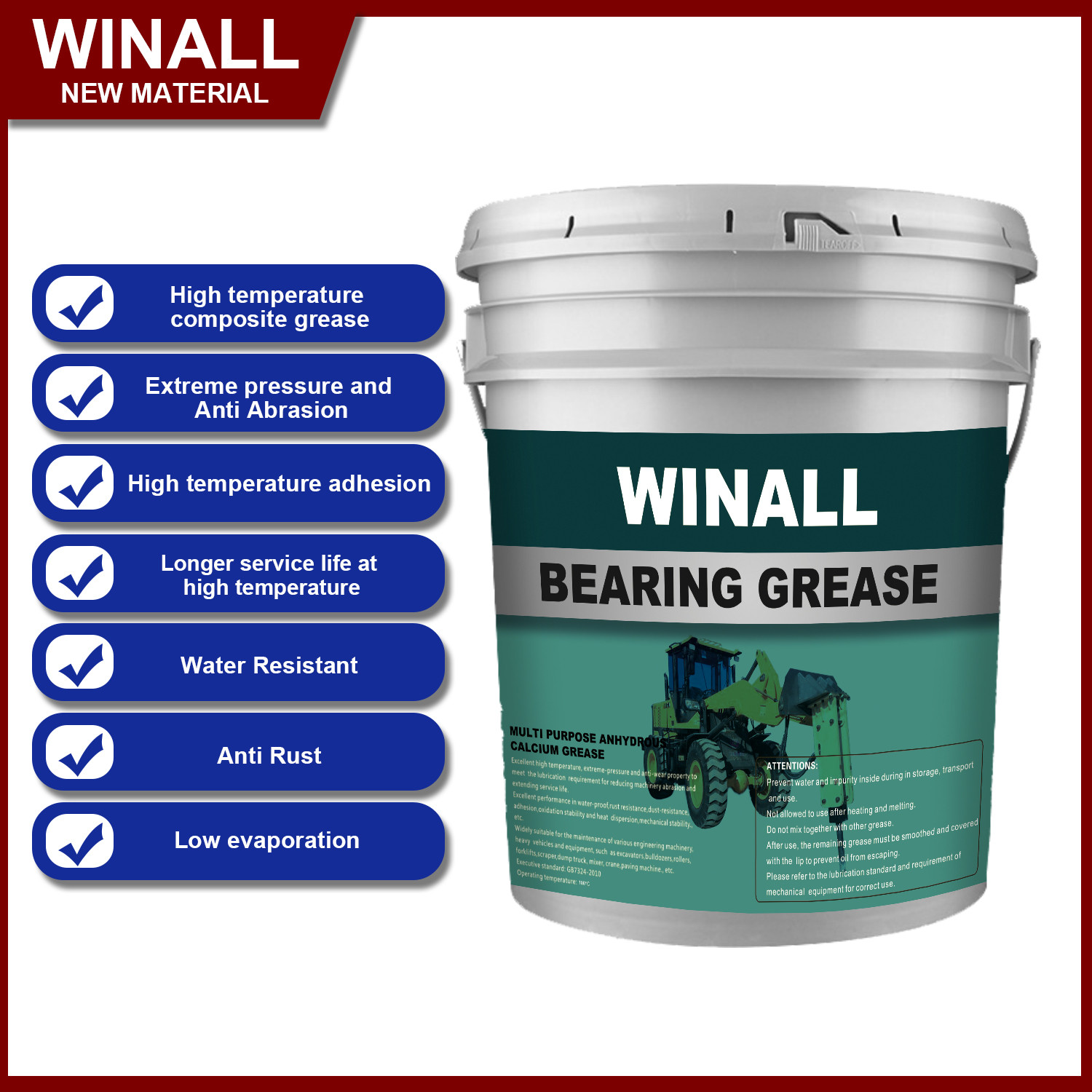 الميزات | ✓ التصاق جيد ✓ تشحيم جيد ✓ ضغط شديد ومضاد للتآكل ✓ أداء جيد في درجات الحرارة المرتفعة والمنخفضة ✓ القدرة على منع التسرب لإطالة عمر الخدمة وإطالة دورة تغيير الشحوم | |